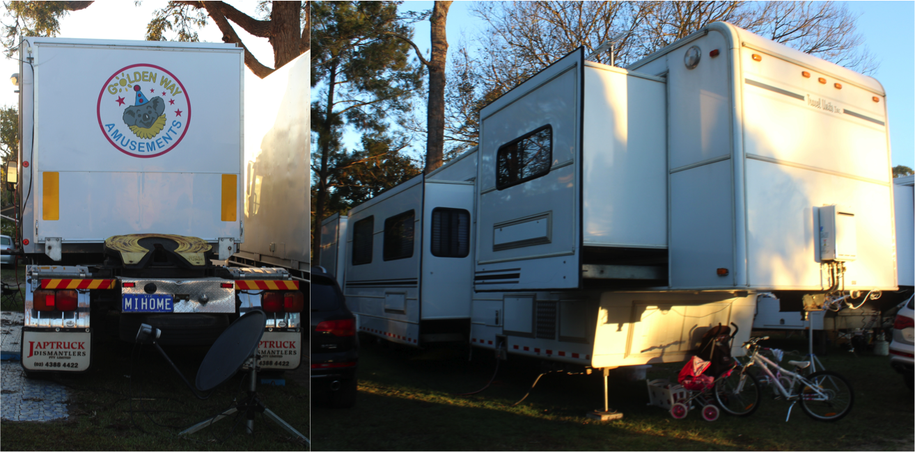 At the city’s closest caravan park, where we live during the working week, we are immersed in a totally different perspective of this Ekka-slash-carnival life.