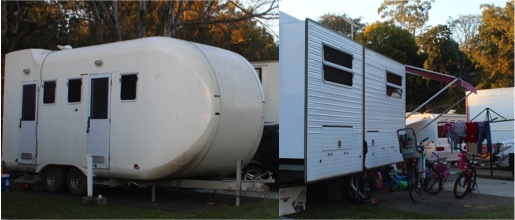 Ancient carnival-style vans sit alongside the latest in mobile living – extending decks, satellite dishes and ensuites.