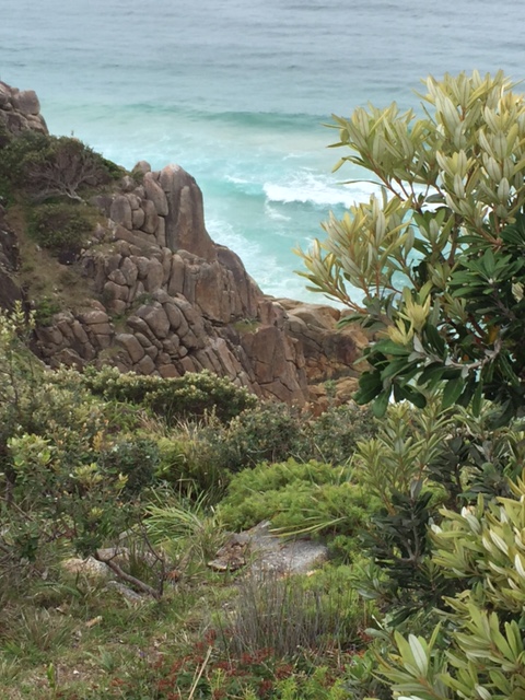 Instead of braving the icy waves and strong rip for too long, we head off along the coastal track.